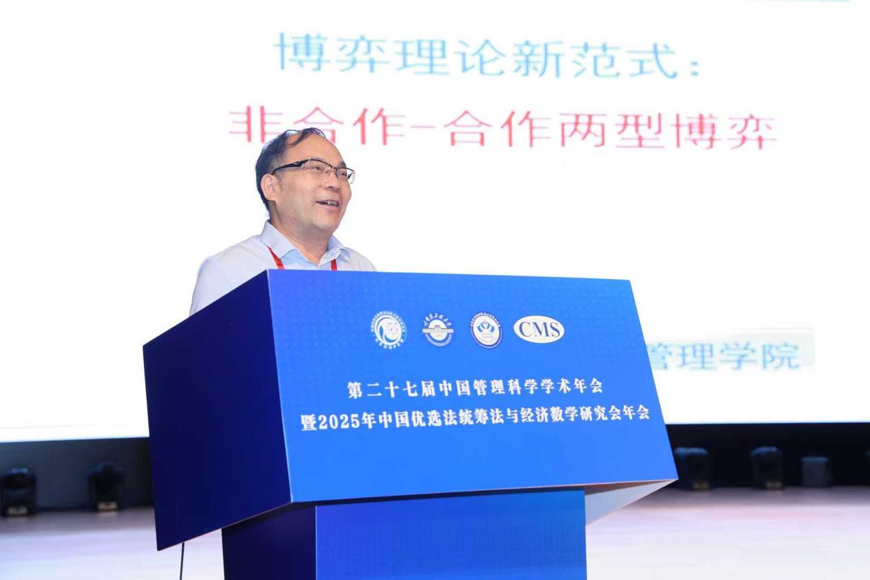 电子科技大学教授李登峰做题为《博弈理论新范式:非合作-合作两型博弈》的主题报告,针对非合作博弈、合作博弈的困境与挑战,提出了竞争与合作并存的非合作-合作两型博弈范式,并介绍了非合作-合作两型博弈的核心思想与求解方法、非合作-合作两型博弈的科学范式与普适性等。