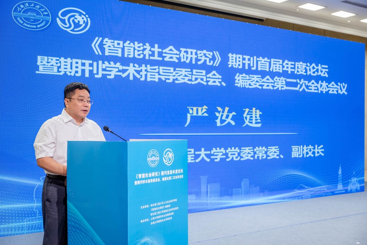 严汝建在致辞中指出,学校深入贯彻落实习近平总书记来校视察重要讲话重要指示精神,持续深耕“三海一核”硬科技,高度重视“问题导向、拥抱技术、思想与文化传承”的“新文科+新工科”融合创新发展。创办《智能社会研究》期刊,正是响应国家构建智能社会核心竞争力的战略需求,推动高水平专门学术平台持续发展的有力举措。希望各位专家学者以此次论坛为契机,深入交流,碰撞思想,凝聚共识,为《智能社会研究》未来发展把脉定向,为回答好中国式现代化进程中的智能社会之问贡献智慧力量。