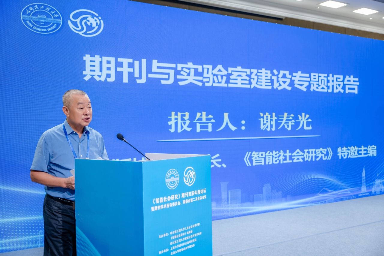 中国出版协会副理事长、《智能社会研究》特邀主编谢寿光教授作期刊和实验室建设工作专题汇报。他指出,《智能社会研究》在升级改版短短半年间已在学界和青年学者群体中产生积极影响,多篇文章被《新华文摘》《中国社会科学文摘》《社会科学文摘》等转载,彰显期刊的学术价值和传播力。未来,期刊将继续秉持学术前沿性和开放性的宗旨,重点支持青年学者,打造具有国际影响力的学术交流平台。
