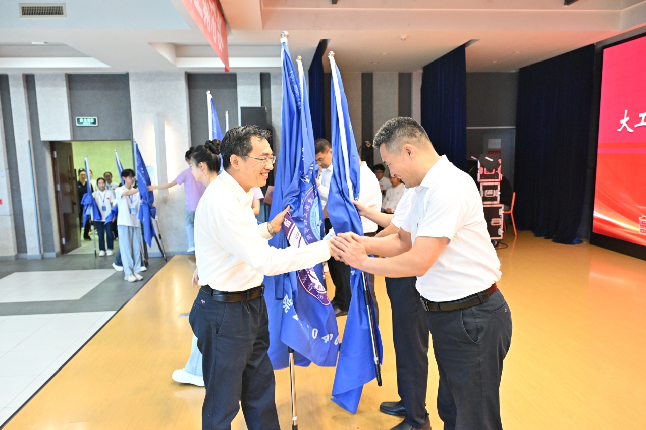 高岩为船舶学院绿色智能船舶工程、航建学院低空技术与工程、动力学院低碳数智动力、智能学院具身智能、水声学院水下信息智能、计算机学院泛在智能计算、信通学院智能感知与通信、材化学院智慧海洋材料、核学院可控核聚变反应堆工程9个专业方向的兴海领军班授班旗。