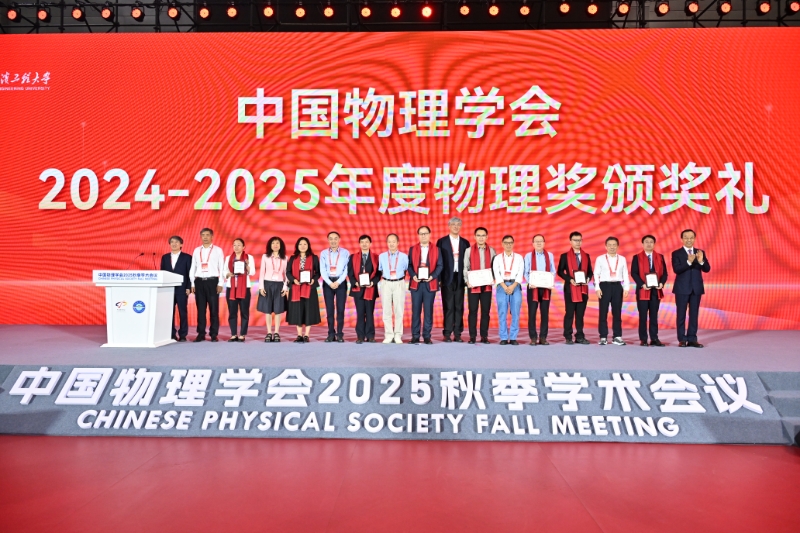 会上颁发中国物理学会2024-2025年度物理奖,鼓励在科学和技术上作出突出贡献的中国物理学者。薛其坤主持颁奖环节,张杰、高原宁、马余刚、谢心澄、金奎娟、林海青、万宝年、黄超光为8位获奖者颁发奖项。山西师范大学许小红、北京大学徐莉梅获谢希德物理奖,复旦大学安正华、南京大学王漱明获萨本栋应用物理奖,西北大学杨文力、中国科技大学卢建新获周培源物理奖,中国科技大学王少杰、上海交通大学陈民获蔡诗东等离子体物理奖。