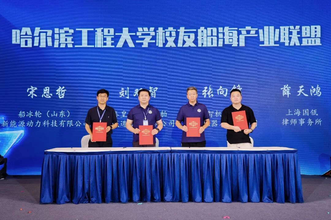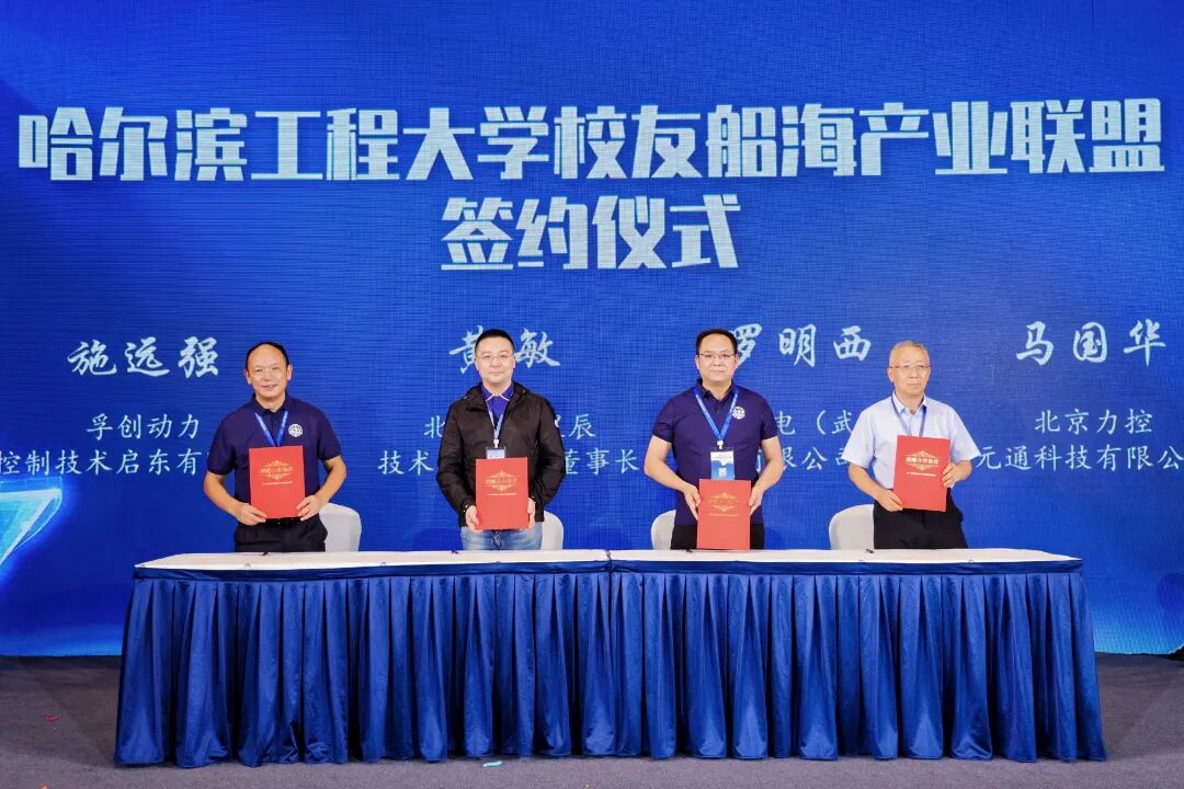 孚创动力控制技术(启东)有限公司、北京诺亚星辰技术有限公司、哈船光电(武汉)有限公司、北京力控元通科技有限公司、哈船冰轮(山东)新能源动力科技有限公司、秦皇岛北方船舶机械进出口有限公司、上海国瓴律师事务所等8家联盟企业,围绕船海装备研发、成果转化、市场合作、法律服务等领域达成合作意向并现场签约。