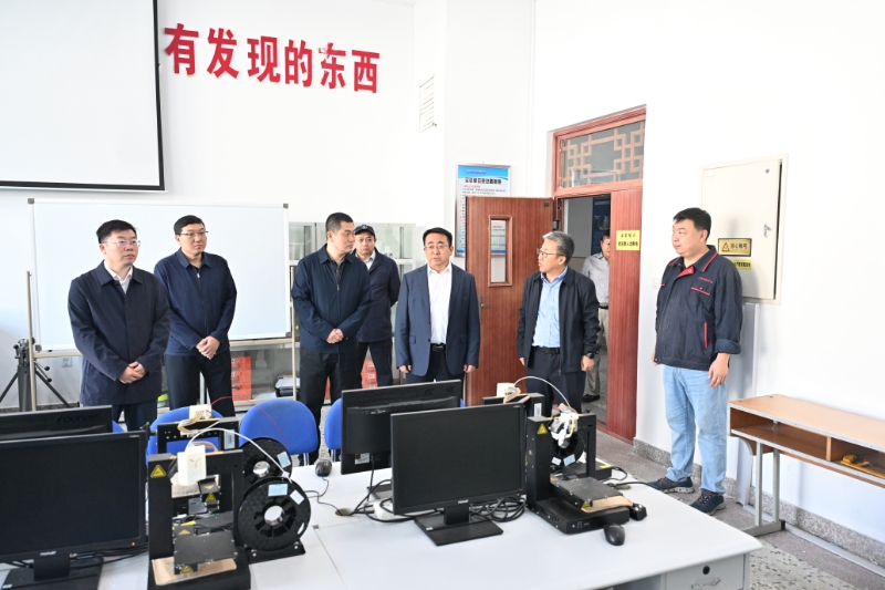 在机电学院实验室,校领导一行查阅设备使用记录与安全检查台账,重点检查特种设备管理、电气线路安全及消防设施配备情况。