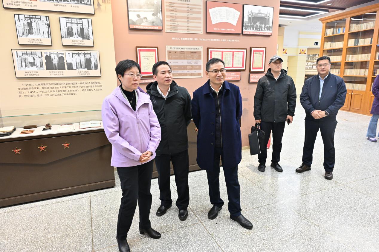 在於志文陪同下,舒华、曹叠峰调研参观了哈军工纪念馆、智慧教室等,了解学校教育数字化建设工作推进情况。