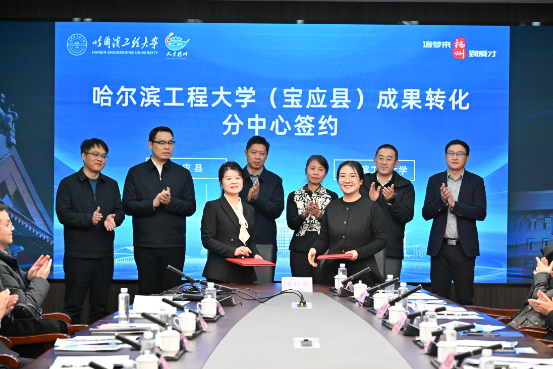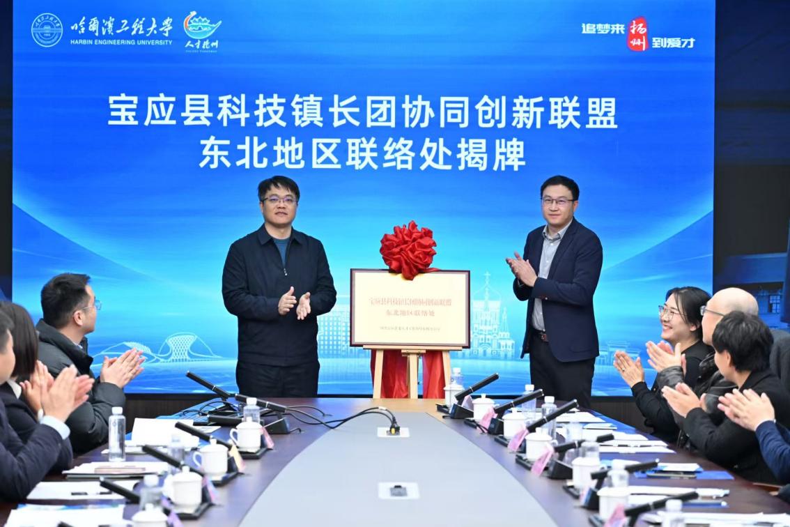 扬州市向学校赠送了“面试补贴券”,鼓励更多学子赴扬州就业创业;双方代表共同为“宝应县科技镇长团协同创新联盟东北地区联络处”揭牌,“哈尔滨工程大学(宝应县)成果转化分中心”完成签约。
