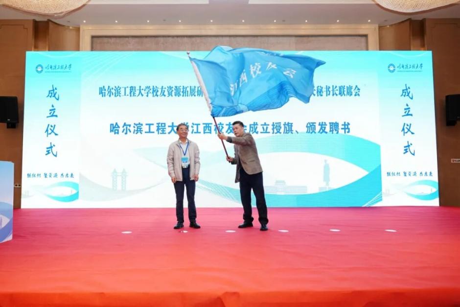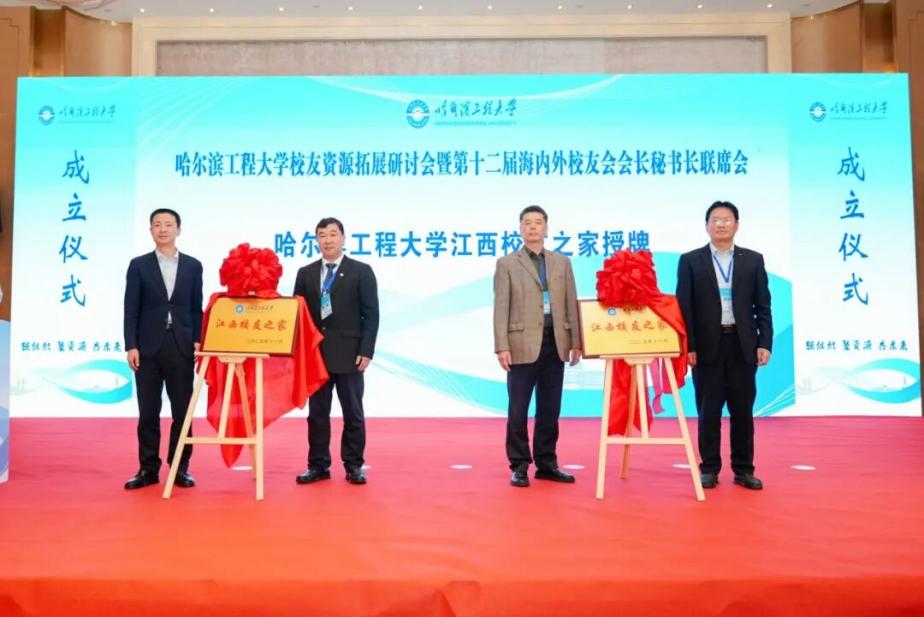大会举行了哈尔滨工程大学江西校友会成立仪式。刘志刚为江西校友会授旗,崔锐捷为江西校友会主要成员颁发聘书。学校船舶工程学院教授张阿漫、发展联络部负责人,江西校友会会长何卫华、秘书长黄经元共同为“哈尔滨工程大学江西校友之家”揭牌。