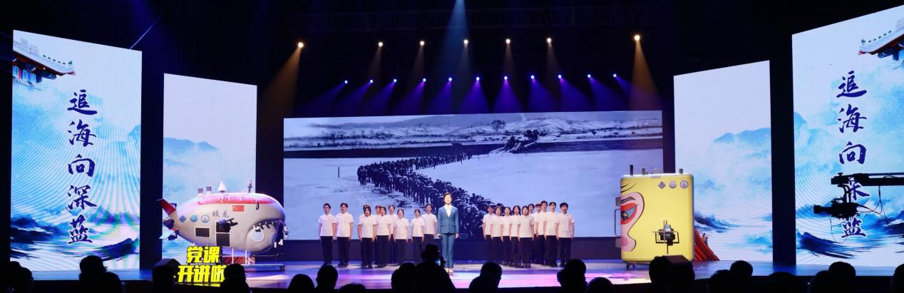 《追海向深蓝》作为全省第二届“身在最北方 心向党中央”党课大赛高校专场一等奖党课,由黑龙江省委教育工委推荐,代表全省高校参加总决赛。党课由机关党委档案馆党支部魏佳主讲、国家大学生文化素质教育基地"海之韵"合唱团助讲,讲述了哈工程一代代师生传承弘扬哈军工精神,紧贴强国强军需要,把“想的是党、为的是国、强的是军”刻入骨髓、融入血脉、化作行动,扎根黑土逐梦深蓝的生动实践。党课通过以陈赓大将为代表的先辈们从无到有创建哈军工、“时代楷模”杨士莪院士一生为国“听海”、“悟空”号万米深潜创造“中国深度”等3个故事,充分展现了学校坚决扛起新时代育人担当,落实立德树人根本任务,服务教育强国、科技强国、人才强国建设,推动东北全面振兴全方位振兴,推进新型工业化,为强国强军再立新功的奋斗画卷。