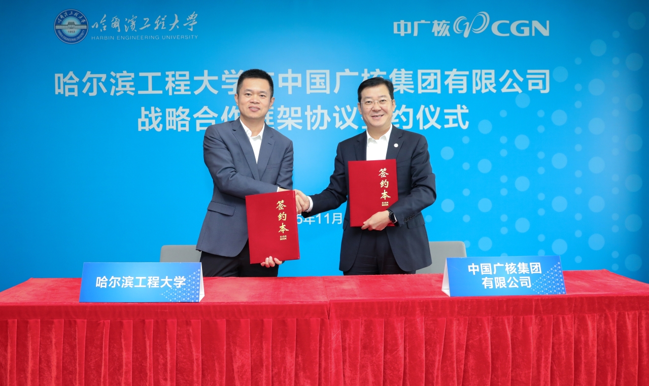 为深入贯彻落实党的二十届四中全会精神,贯彻落实习近平总书记视察哈工程重要讲话重要指示精神,落实“五个坚持、五个注重”办学原则,11月28日,校党委副书记、校长殷敬伟赴中国广核集团有限公司开展调研。双方围绕人才培养、科学研究、平台建设等方面深入交流,并签署战略合作框架协议。中国广核集团有限公司党委副书记、总经理庞松涛出席座谈会。中广核集团公司党委委员、中广核电力副总裁秦余新、周建平,校长助理陈海龙参加座谈会。