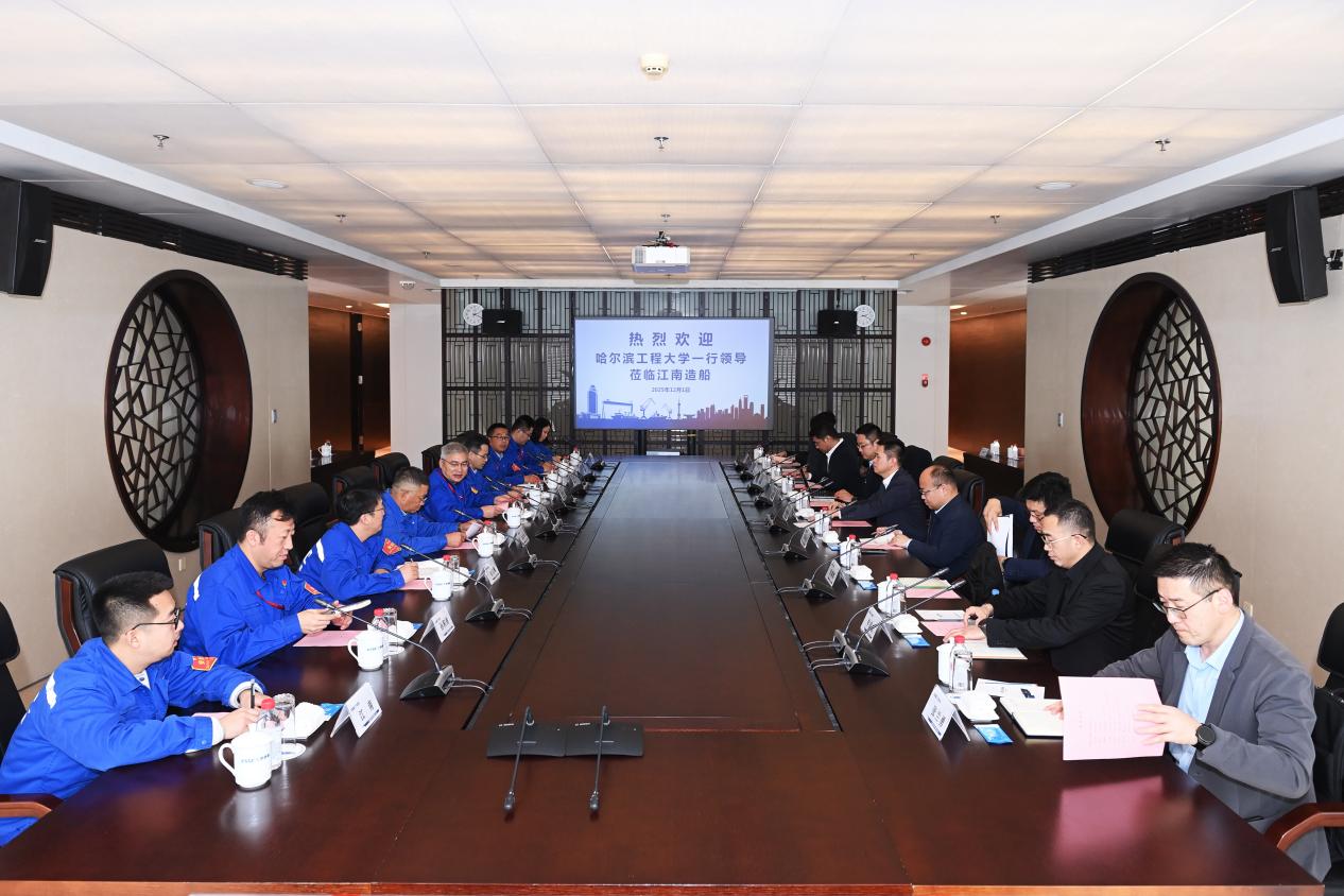 袁飞鹏表示,哈工程与江南造船渊源深厚,多年来在人才培养、科研协同等方面合作紧密,成效显著。希望双方以国家重大战略需求为导向,共同谋划国家重大任务,推进关键技术联合攻关,创新校企协同育人机制,形成校企协同强大合力。
