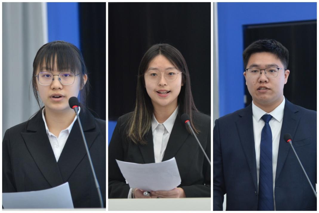 学生代表戴憩梦、刘子越、刘昶作成长汇报,分享了他们在校的学习收获、科研体验与成长感悟。