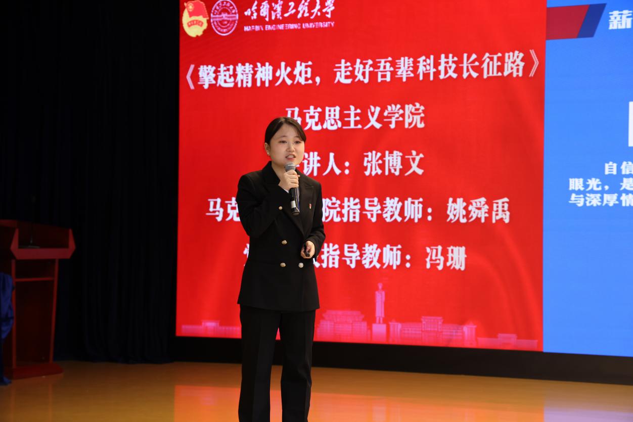 水声工程学院王斯瑜以杨士莪院士人生的四次关键选择为脉络,深刻诠释了哈军工“想的是党、为的是国、强的是军”的精神内核,以此激励青年学子,将个人理想融入国家发展大局,在经略海洋、科技报国的征程中,以扎实奋斗回应时代之问,交出无愧于心的青春答卷。