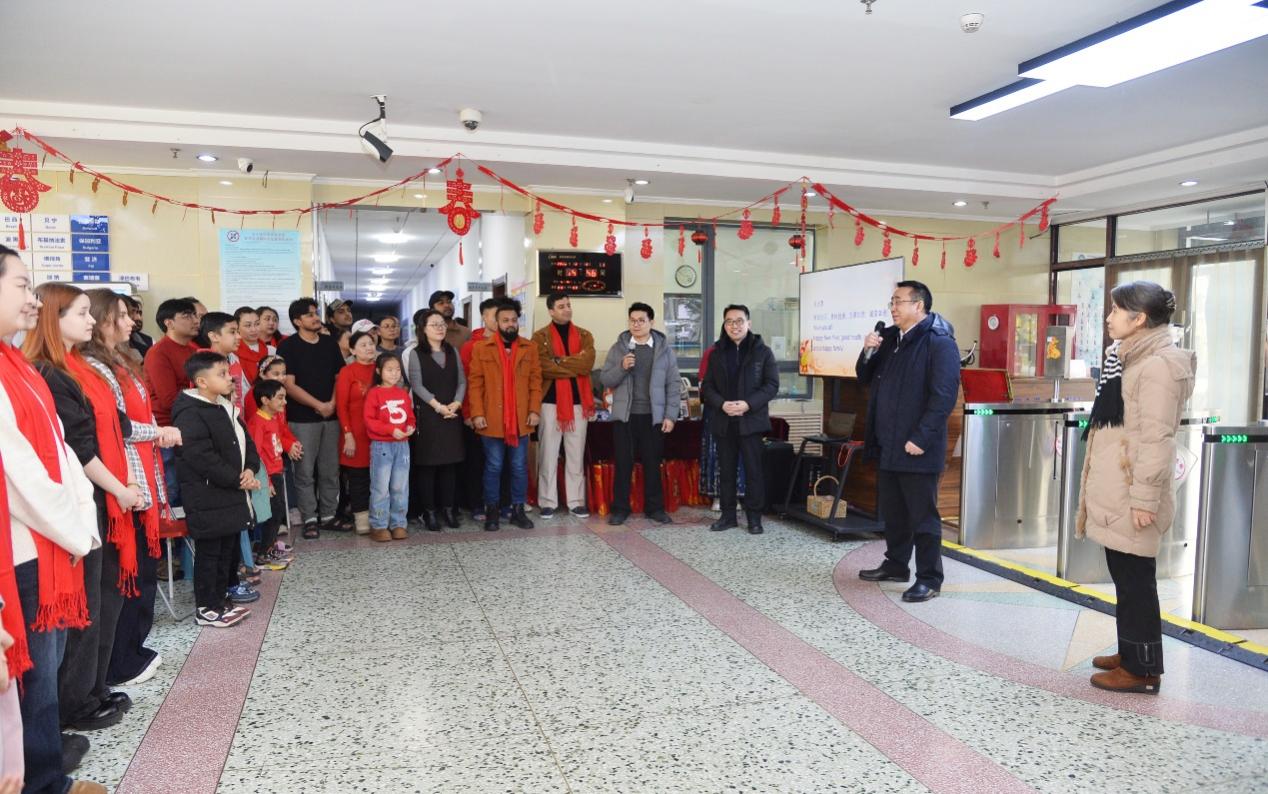 在外专公寓,宋迎东向留学生代表致以新春问候。宋迎东表示,学校始终关心着留学生的生活与学习,希望大家在哈工程学习知识、增长本领的同时,积极参与校园文化活动,当好中外文化交流的桥梁纽带,讲好中国故事,展现哈工程学子的良好风貌。