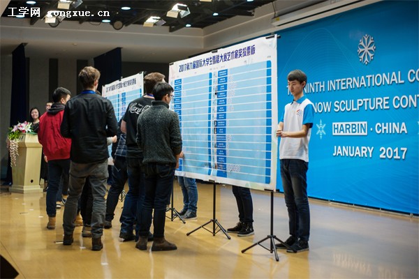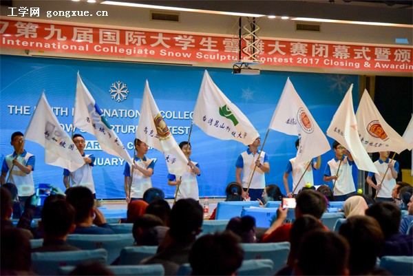 1月7日,2017第九届国际大学生雪雕大赛闭幕式暨颁奖仪式在启航活动中心多功能厅举行。经过4天的激烈角逐,泰国乌汶叻差他尼职业学院的《水中鱼,田中米》和北京理工大学的《梦回延安》获得特等奖。