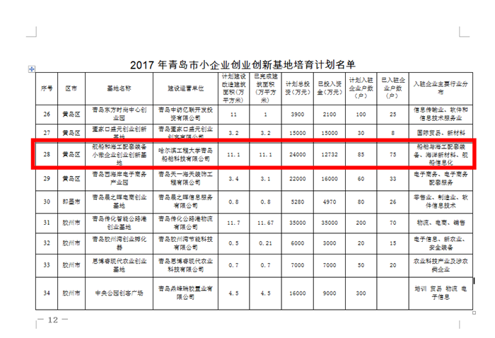 哈船青岛科技园舰船和海工配套装备小微企业创业创新基地日前被列入2017年青岛市创业创新基地滚动培育计划,这将为园区的发展起到强有力的推动作用。