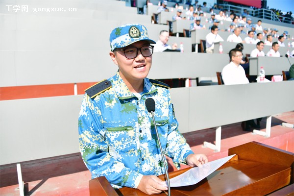 庄严的升旗仪式后,核科学与技术学院2017级学生任佳星代表新生发言,他表示将继承和发扬哈军工精神,严谨求实、勤奋创新,争做有理想、有追求、有担当、有作为、有品质、有修养的新时代青年。