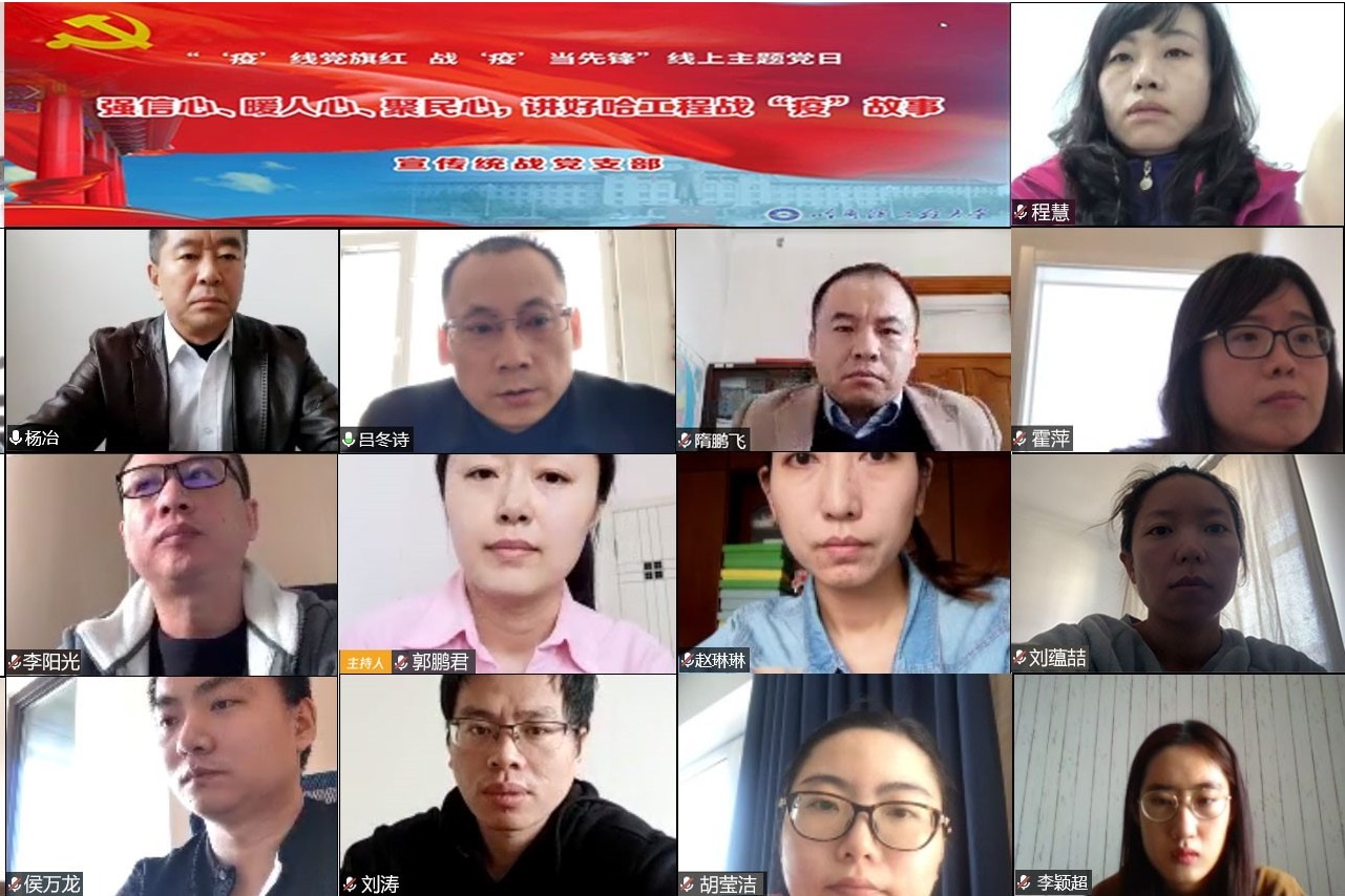 4月2日,宣传统战部党支部组织全体党员开展 “强信心、 暖人心、聚民心,讲好哈工程战‘疫’故事”线上主题党日活动。党支部书记吕冬诗主持党日活动,校党委副书记杨冶作为支部成员参加了主题党日活动。 在主题党...