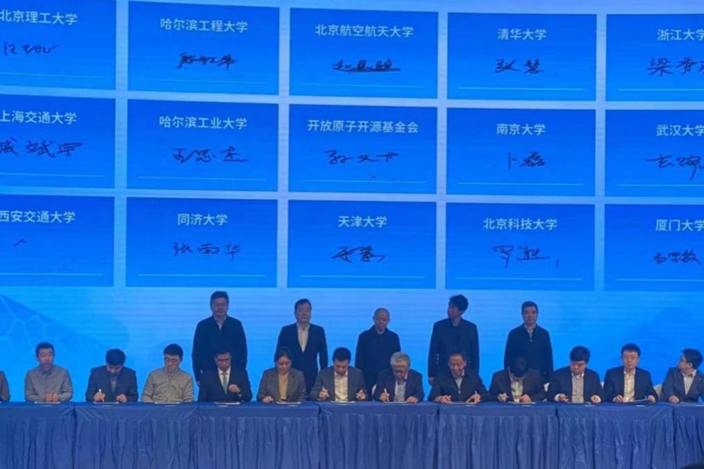 学校与开放原子开源基金会签署合作协议,计算机学院院长蔡成涛参加“开放原子开源社团”授牌仪式。
