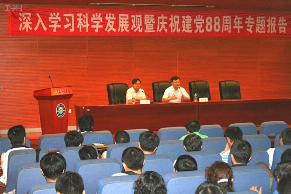 为纪念建党八十八周年,讴歌党的光辉历程和新中国成立60年来取得的伟大成就,6月27日,计算机学院邀请省委党校副校长、我校兼职教授祝福恩为学院全体师生党员、学生干部做报告。