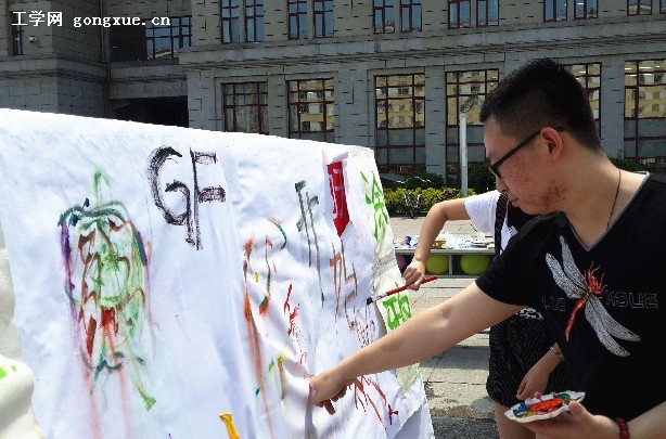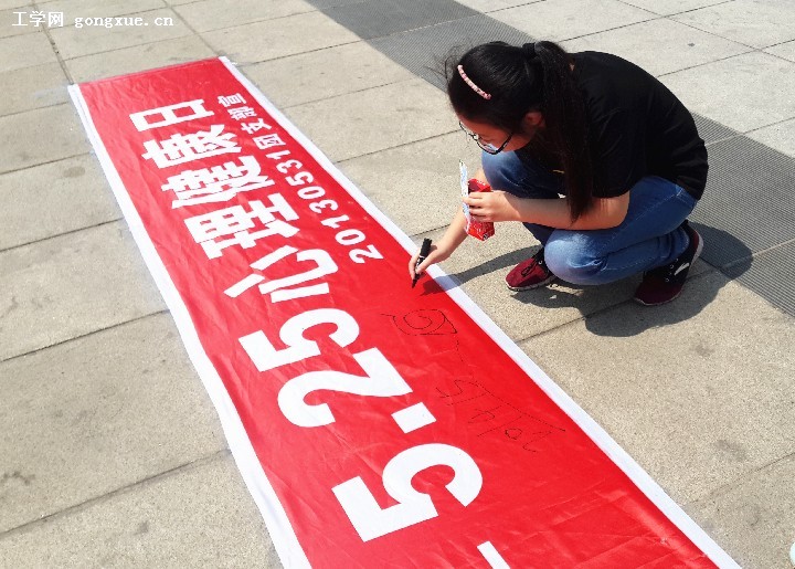 25日中午,“5•25我爱我,绘出自己的蓝天”百人签名活动在奥列霍夫广场举行,路过的同学纷纷参与其中,最终,一张十米长的红条幅上覆满了同学们的签名,写满了同学们对生命的热爱。