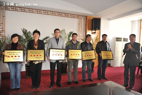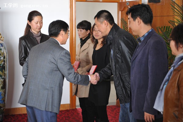 谷焕民和刘志刚分别为“三育人”先进集体和先进个人颁奖。
