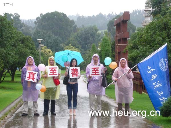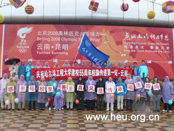 由昆明校友会承办校旗传递第一站在昆明世博园正式开始。 “99昆明世界园艺博览会”(简称“99世博会”),以“人与自然”为主题展示了各国、国内各省的园艺微缩景观。虽然活动当天暴雨倾盆,但是怀着对母校深深的爱和思念,校友们手举校旗途径了世博园内的四川、湖北、上海、南京几个微缩景观展点最终抵达了黑龙江哈尔滨微缩景观展点,