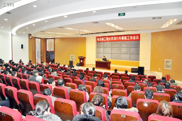 校党委副书记、副校长魏潾以《精心谋划工程大学的明天》为题,就我校“十二五”的总体形势、如何看待过去的成绩与不足、为建设高水平研究型大学而奋斗等作专题发言。
