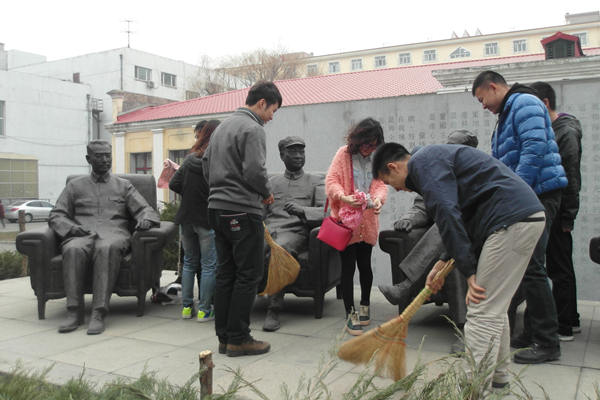 4月23日下午4点,人文学院学生会实践部组织星火志愿者服务队来到“受命”群雕,组织本次志愿者服务活动。