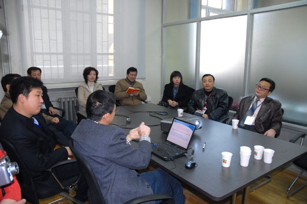 评估专家组组长匡镜明教授与校党委书记谷焕民、校长刘志刚交流了高水平研究型大学建设与研究生培养等问题。评估专家徐德民还与杨士莪院士进行了交流。