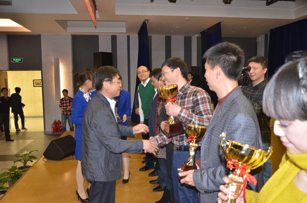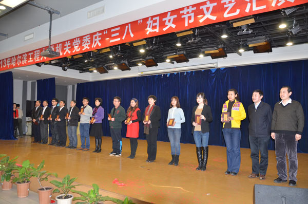 经过专业评委和大众评委的认真评选和现场打分,基建处戏曲联唱《快乐基建》获得一等奖;发展计划处、学科专业建设办公室、政策研究室的歌舞表演《相亲相爱》,党政办、校友办的合唱《中国之最》,科研院的音乐剧《跨越2013》获得二等奖;离退休处的情景剧《空巢》,保卫处的诗朗诵《巾帼赞歌》,校工会的舞蹈《掀起你的盖头来》,实验室与资产管理处的歌舞《学校永远走在阳光路上》,审计处的伴唱诗朗诵《保驾护航写忠诚》获得三等奖。校领导、校长助理上台为获奖单位颁发了荣誉证书。