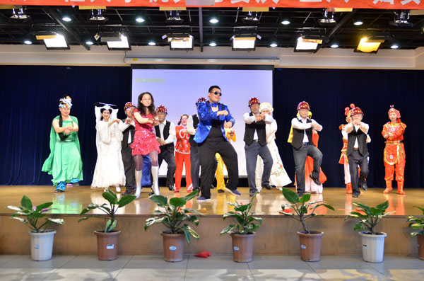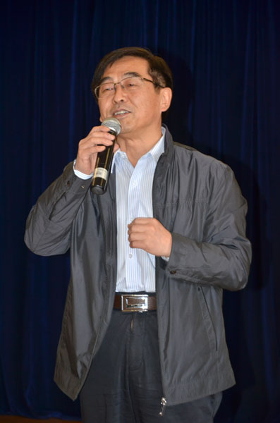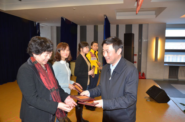 校长刘志刚在演出前讲话。他向全校女教工致以节日的问候,感谢她们对学校发展做出的努力与成绩,他希望女教工们一如既往地为学校发展做出更大贡献。