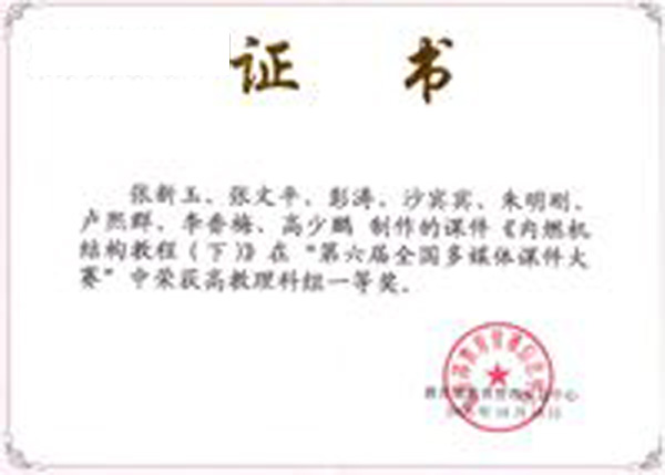 2006年10月15日至18日,由教育部教育管理信息中心主办的第六届全国多媒体课件大赛现场决赛和颁奖典礼在北京举行,我校动力与能源工程学院的张新玉、张文平等开发的《内燃机结构教程(下)》经过激烈的角逐,最终获得了高教组一等奖。