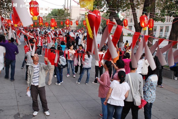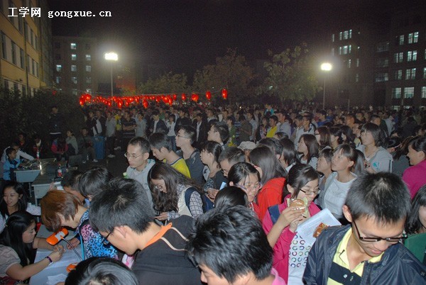 本届灯谜会以“浓情中秋 校园赏月 健康颂美 欢乐和谐”为主题,由学生二、三、九公寓承办。晚六时许,明月升空,百余盏大红灯笼同时点亮,与月光、星光交相辉映,奥列霍夫广场立刻涌动起一片红色的海浪。全校本科生、研究生、青年教工均参与到了活动中。大家穿梭其间,赏灯猜谜,其乐融融。参与者只要猜中五个灯谜,就会得到一份精美的月饼以及来自领奖处工作人员的中秋祝福。为活跃现场气氛,除猜灯谜外,本届灯谜会还增加了播放视频电影、现场抽奖、即兴献歌两个单元,同学们只需将自己的姓名、公寓和寝室号写到纸上投到抽奖箱里,就有可能在十五分钟进行一次的抽奖环节中中奖,得到公寓部送出的一份月饼,礼物虽轻,但这好运却让参与的同学倍感喜悦。即兴献歌更是将节日的氛围引入高潮,同学们用歌声传递对家人的思念,表达对学校、对后勤集团、对公寓的祝福,让公寓这个大家庭的和谐友爱愈演愈深,活动一直进行到8点40分结束。