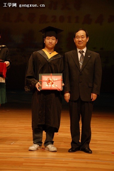 在毕业典礼接近尾声的时候,副校长杨德森为2011届毕业生拨穗,院长张志俭为毕业生颁发证书并合影留念。张院长为毕业生致辞,他说,很高兴能为毕业们颁发毕业证书,真心的祝愿他们在以后的人生道路中一切顺利。最后毕业生代表王子为同学向杨德森副校长赠送了礼物。
