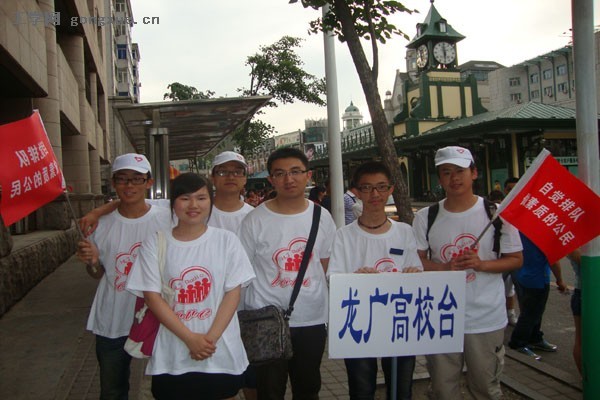 6月21日下午,哈尔滨工程大学校青年志愿者协会志愿者在哈尔滨市友谊路102路公交站,参与“龙广爱心节•公民排队第一季”公益活动,该活动由黑龙江广播电台举办并已在全市开展。