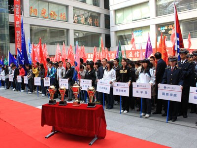 杨德森为2011年我校 “启航行动”团队学生代表授旗。