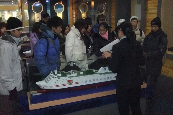 下午2点,香港城市大学参观团乘车到达我校启航活动中心,在我校讲解员和校学生会学生干部的带领下,先后参观了船舶博物馆及学生科技作品展厅。香港城市大学的同学们对展品十分感兴趣,纷纷留影纪念。
