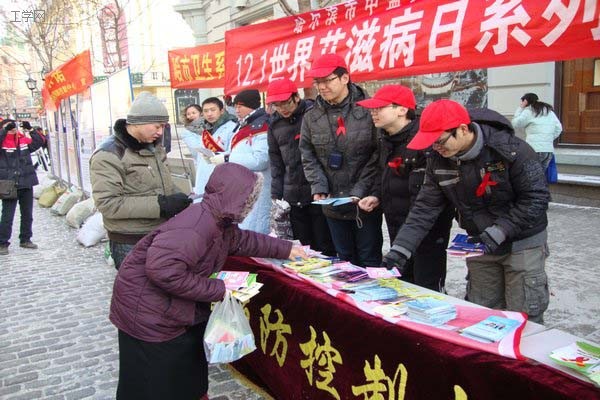 12月1日上午,以“防治艾滋病”为主题的世界艾滋病日特别宣传活动在哈尔滨市中央大街举行。本次活动由哈尔滨市总工会、共青团哈尔滨市委、哈尔滨市妇女联合会共同主办,由我校青年志愿者协会承办,“小红帽”青年志愿者服务队协办。参与此次活动的还有哈尔滨第四医院、红十字中心等组织。