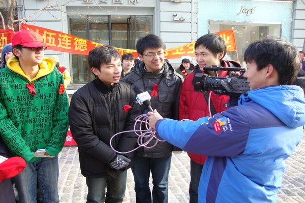 在整个宣传过程中,来自哈尔滨电视台和东北网的记者采访了志愿者代表,并对志愿者的活动表示赞赏。