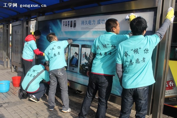 本次清理公交车站牌的社会实践活动不但有利于市民的出行,而且还让同学们体会到了劳动人民的艰辛,深得广大市民和同学的好评。