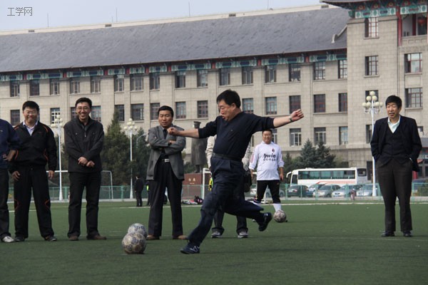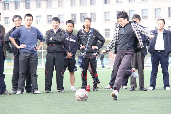 30日中午,2010年教工足球比赛中的校副处级以上干部“足球射门大战”环节在军工操场足球场进行。