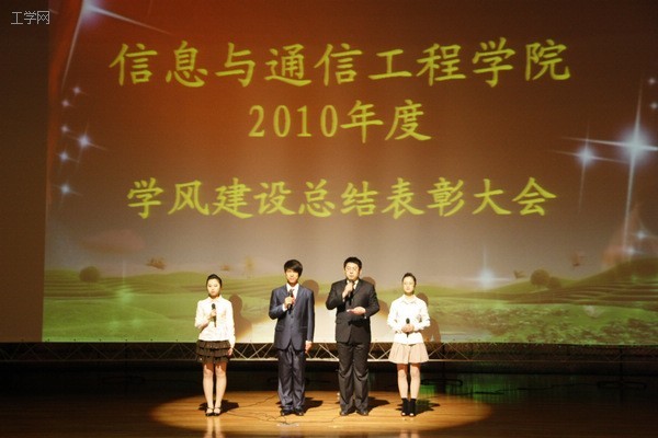 5月22日晚,信息与通信工程学院2010年度学风建设汇报暨表彰大会在启航剧场隆重举行。校学生工作处处长吕东诗,校团委书记殷敬伟,校教务处副处长刘志强,信息与通信工程学院党委书记刁明,副书记于欣欣,院长陈万海,副院长张朝柱以及部分教师代表出席本次大会并担任颁奖嘉宾。