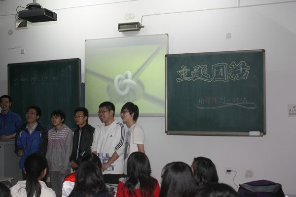 080115团支部精心准备了关于母亲节的幻灯片,团干部则为同学们讲述了一些伟大的母亲们的感人事迹,例如汶川地震中因保护孩子而失去生命的母亲等。母亲们的伟大感染了每一位在场的同学。