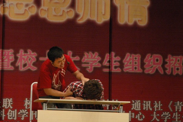 演出期间,校十大学生组织负责人还一齐登台,为次日的招新拉风、打气。