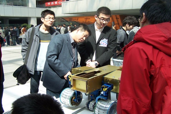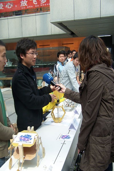 此次参赛作品不仅设计独特、功能多样,还涉及了工业、农业和居民生活等十几个方面。小巧便捷的“自动书架”、栩栩如生的“仿生机械水母”、灵活新颖的“六足越障机器车”,均受到了评委的青睐。其中,简单实用的“眼镜自动去霜机”以其贴近生活的出发点引得全场师生纷纷试用,而“新型可重构移动机器人”更是以其独特的设计方式吸引了众多师生的观看和询问。