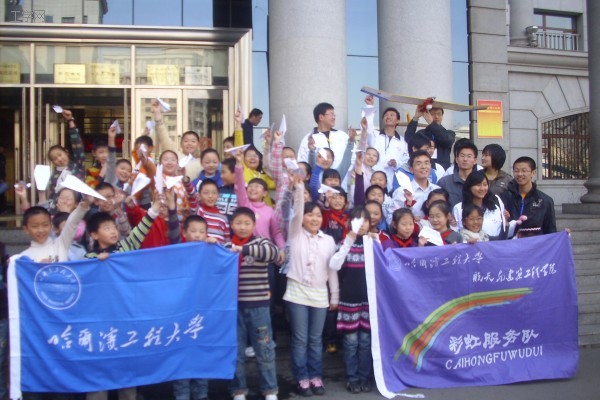 4月23日,我校航天与建筑工程学院彩虹志愿服务队师生一行13人深入到南岗区马家沟小学,开展“启航行动”科技创新指导活动。