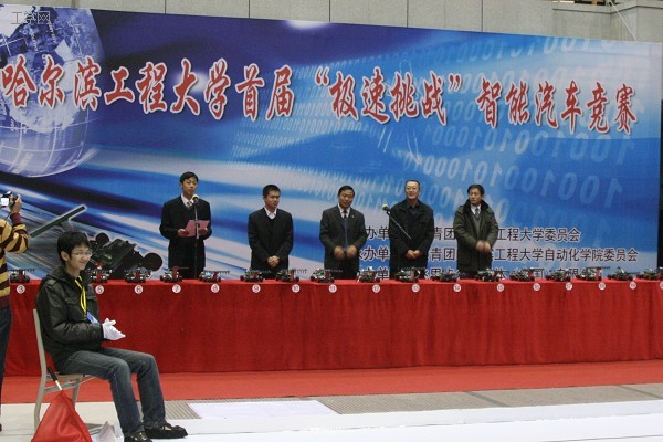 12月5日,首届“极速挑战”智能汽车竞赛在启航活动中心阳光大厅举行开幕式。党委副书记、副校长魏潾,教务处、校团委、自动化学院有关领导出席开幕式。