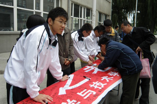 10月3日中午,核科学与技术学院在大学生美食城门前举行主题为“老吾老以及人之老”的敬老爱老签名活动。