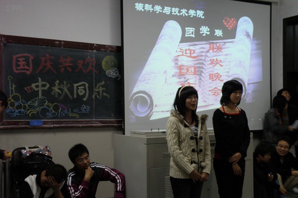 10月1日晚18:00,由核学院团学联主办的迎国庆联欢晚会在27号楼正式拉开序幕。此次晚会目的在于庆祝祖国六十周年华诞的同时,丰富同学们的校园生活,增强团学联各部门之间的沟通。