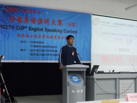 9月29日晚,“CCTV”杯英语演讲比赛哈工程赛区复赛结果揭晓。自动化学院的王东、船舶学院的李国依、外语系的王继成和信通学院的张子祎(并列)从全校17名参加复赛的选手中脱颖而出夺得前三甲,并将代表哈尔滨工程大学参加“CCTV”杯黑龙江省的复赛。