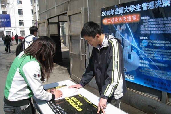 伴随着条幅、海报、电子屏、网站新闻等多种方式的宣传,全国大学生管理决策模拟大赛的热潮席卷我校。4月29日、30日两天,经管院科协在大、小美门前举办了咨询宣传活动,许多同学前来了解比赛规则、比赛方式等信息,表现出较高的热情,并进行了现场报名。
